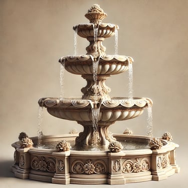 These fountains have multiple levels of basins, with water cascading from the top tier to the lower ones. They often have a classical or traditional look.