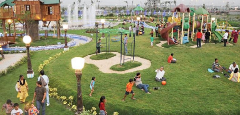 Sports Fields and Courts: Dedicated spaces for cricket, soccer, basketball, and other sports.