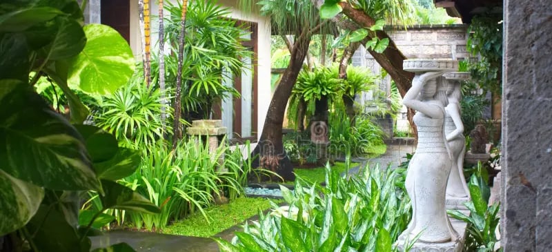 Residential Homes: Gardens, patios, living rooms, entryways.